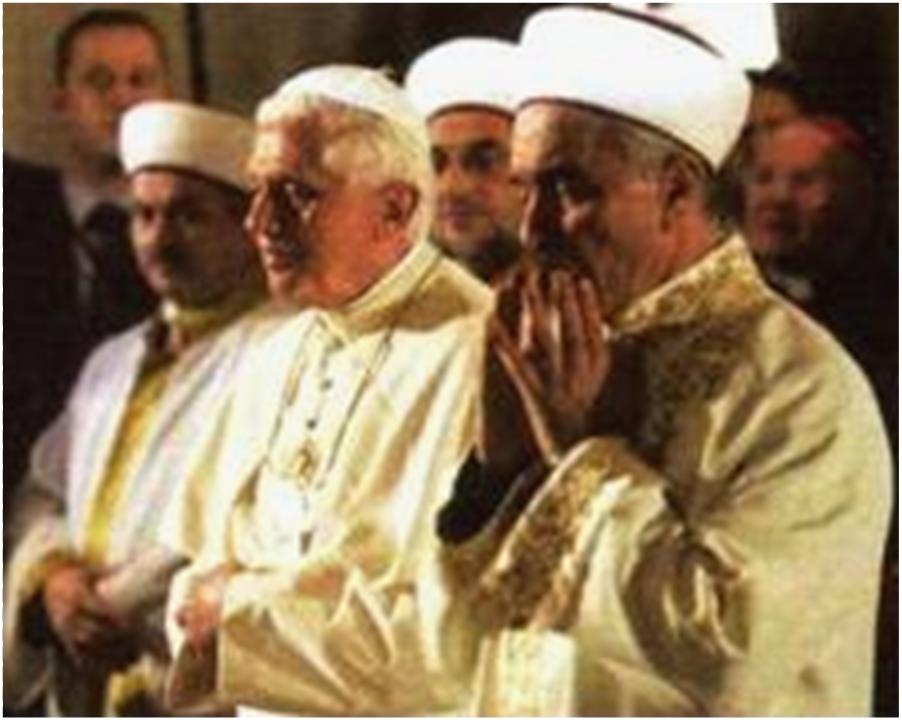 As seen here Joseph Ratzinger (a.k.a. "benedict-16") a previous leader of Satan's vatican-2 heretic cult (founded in 1965 at the Vatican) and Jorge Bergoglio (a.k.a. "francis") a previous leader of the vatican-2 cult, are fully supportive of the anti-Christ un-baptized pagans who refer to themselves as "islam" ... the implementers of the below pictured "sharia". More apostasy pictures of these two soul damning liars on Sections 12.6.2 and 12.10.1.