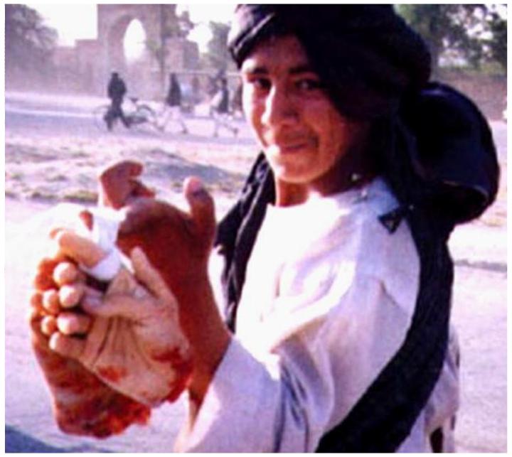Note: Notice traumatized look on the face of the youth, middle picture of the next to last row ...