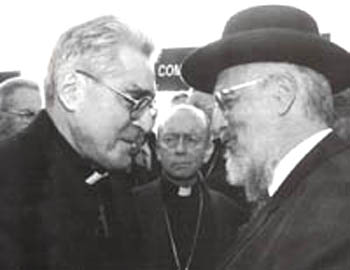 "Commemorating the occasion" of the vatican-2 heretic cult establishing relations with "Israel" (a state under the control of people who have/had nothing to do with the Old Testament), ... "rabbi" (un-Baptized pagan) Henry Sobel kisses vatican-2 cult group leader ... the fake "cardinal Arns" in Sao Paulo.