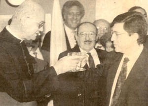 The first ambassador of the vatican-2 heretic cult to "Israel" ... vatican-2 cult group leader "msgr Andrea Montezemolo" ... with "Israeli" president Ezer Weizman (an un-baptized pagan).