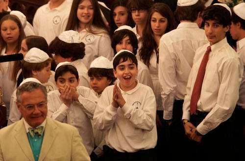 Children look on as soul damning liar "benedict-16" ... arrives at the Park East sin-a-gogue on April 18, 2008, in New York City.