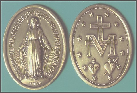 5. Framing the apparition was an inscription: "O Mary, conceived without sin, pray for us who have recourse to thee." When Mary spoke to Saint Catherine, she said ... "Have a medal struck upon this model. Those who wear it will receive great graces."